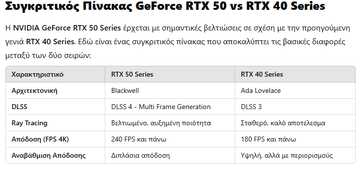 Κύρια Χαρακτηριστικά της NVIDIA GeForce RTX 50 Series